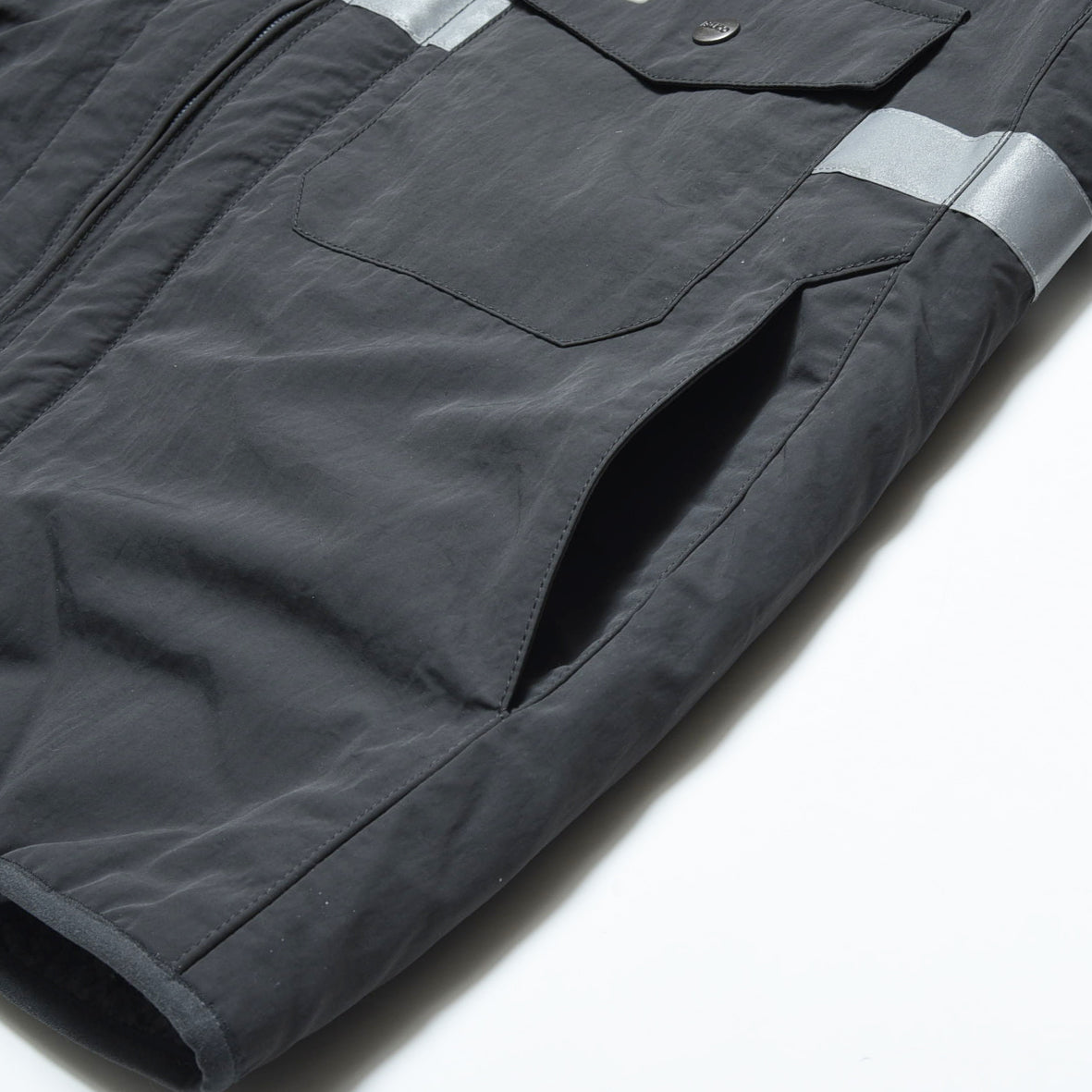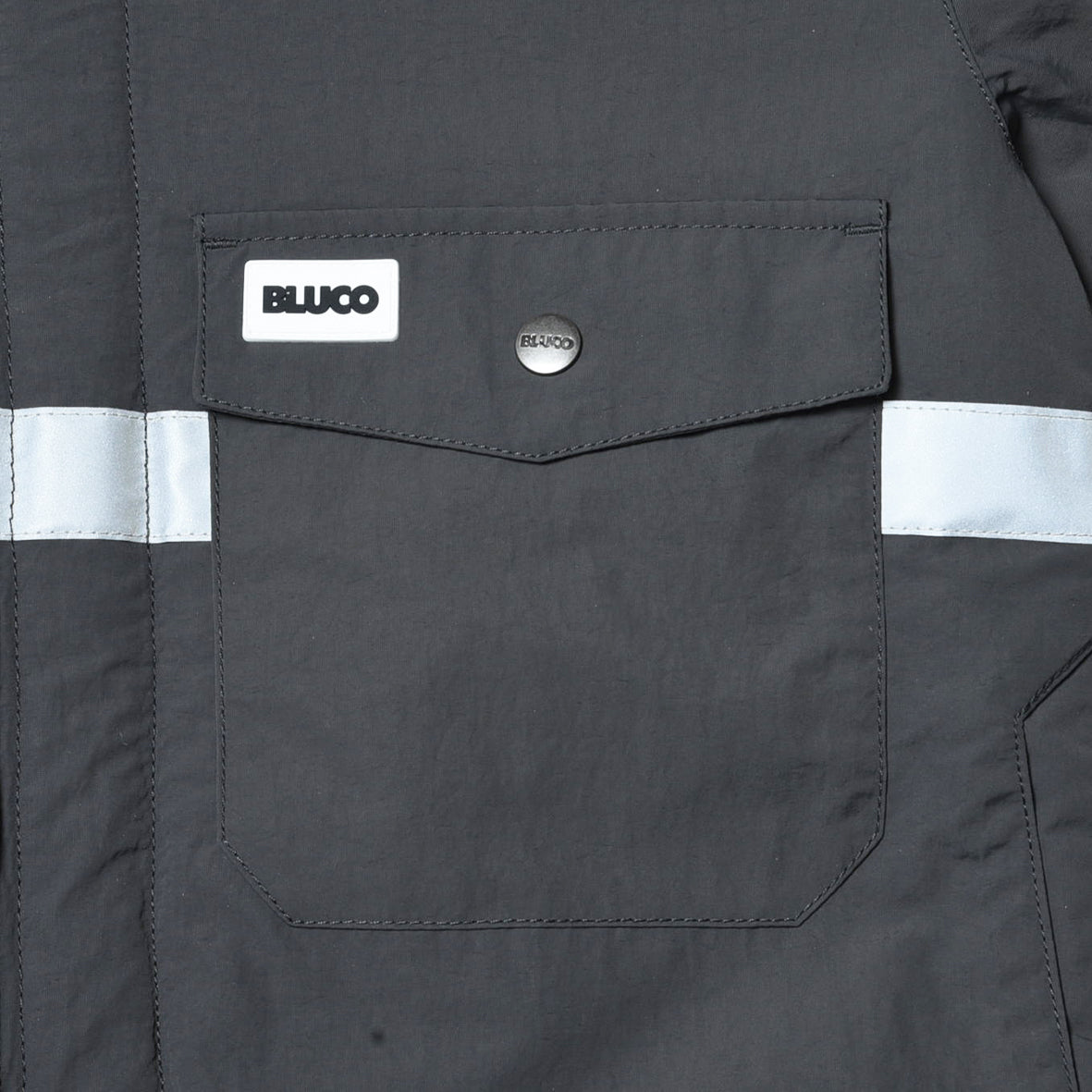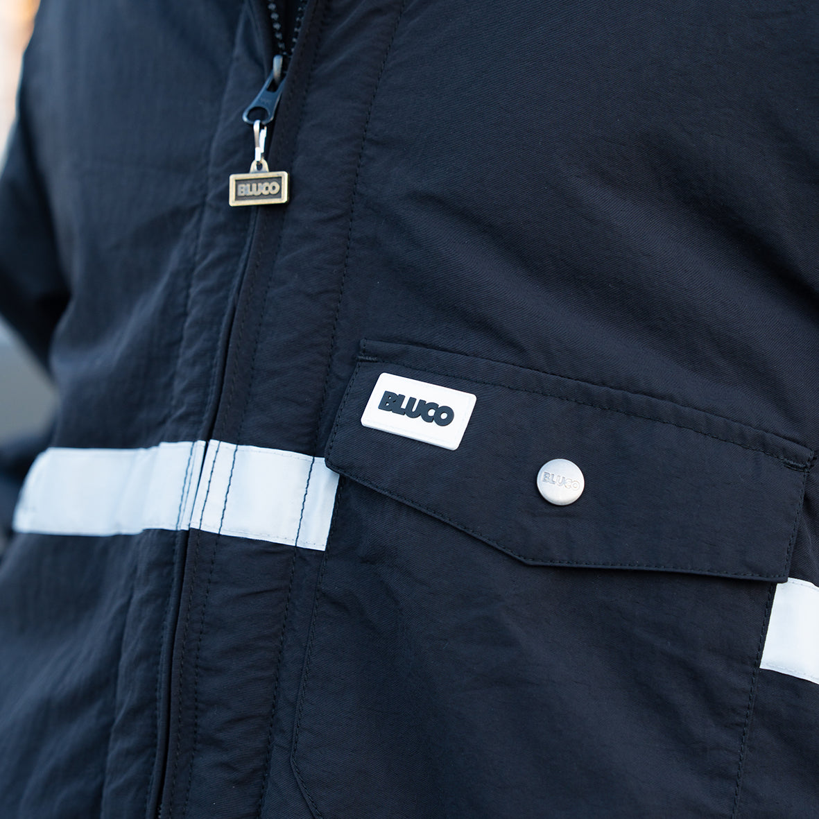 胸元と背面に配されたリフレクターテープが、視認性とデザイン性を両立。無骨さの中にBLUCOらしい機能美が感じられる、新たな定番となり得る一着です。