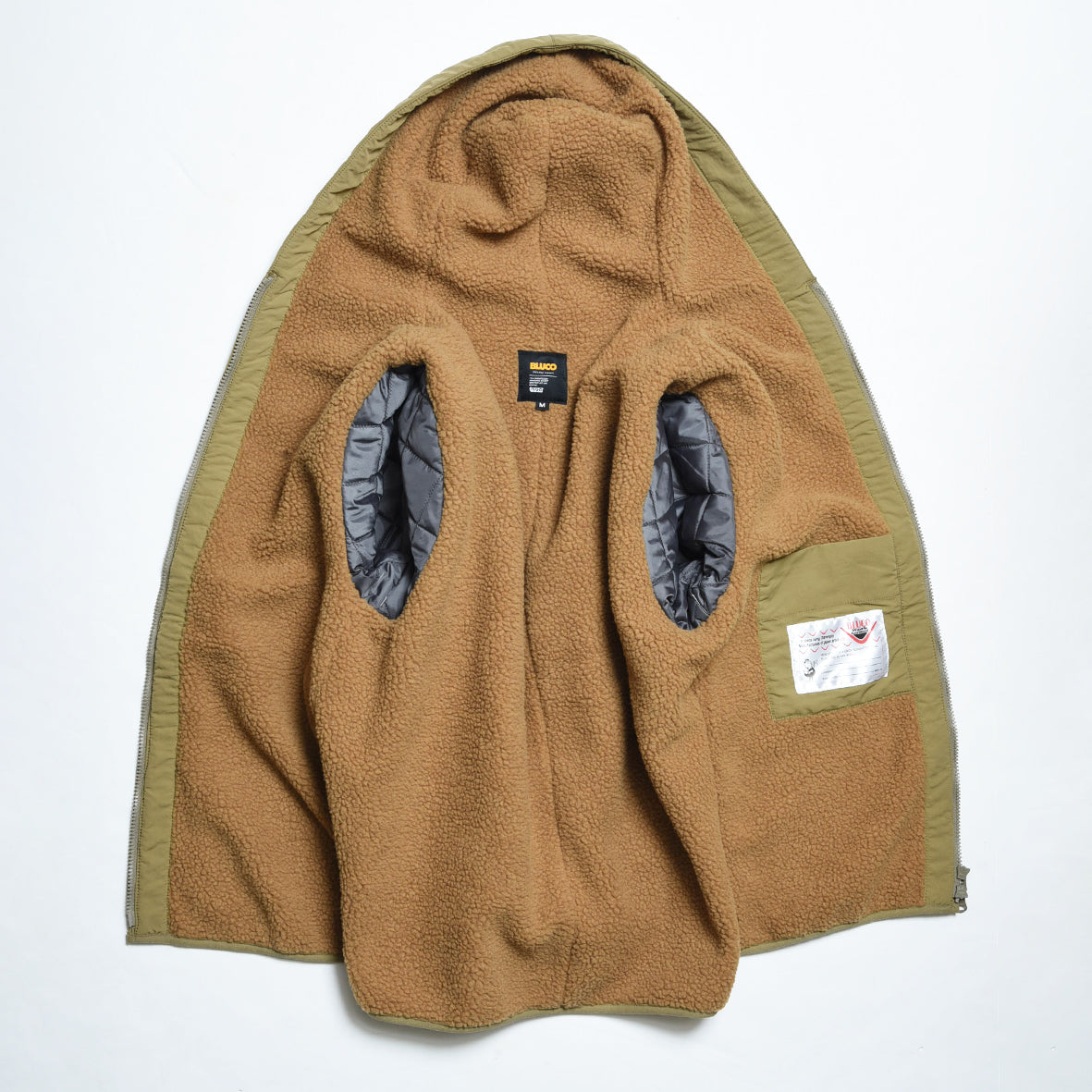 撥水性に優れたタスランナイロンの表地と、防寒性の高いシープボアを組み合わせたフードジャケット。軽量ながらしっかりとした保温力があり、日常からアクティブなシーンまで幅広く対応します。